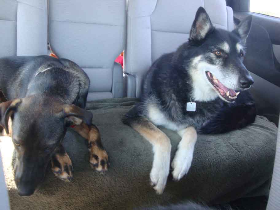 | Even Sammy decided the back seat was more comfortable than the console!!!! |