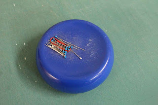 I'm in a very focused sewing mode these days and I've got a cutting mat set up, a station for adding borders, an ironing station and my sewing machine. I'll show you tomorrow what it all looks like. Sometimes, I need pins at the cutting station, sometimes at the border station and then I need some place to put the pins when I'm sewing. Hence, I need THREE pin cushions. I've only got one! Wait - technically, I've got three.