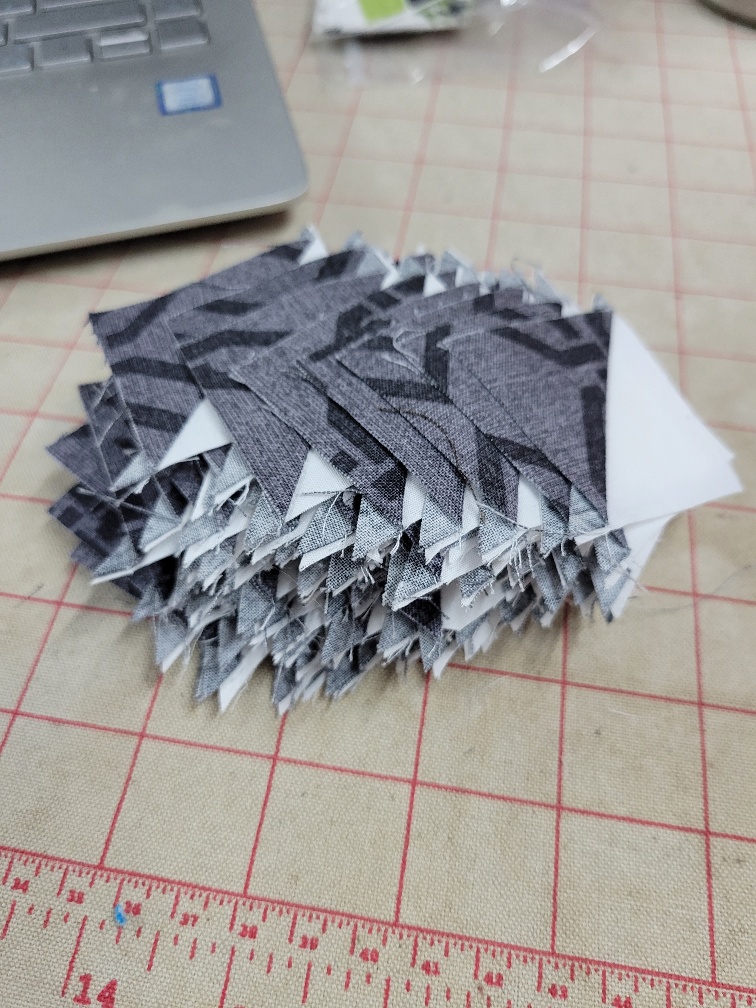 | Half-square triangles ready to trim |