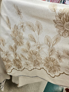 Embroidery on cloth seems to be a big thing and HEY -- I can do that myself., although it would take a long time. It might be easier to just buy and make!